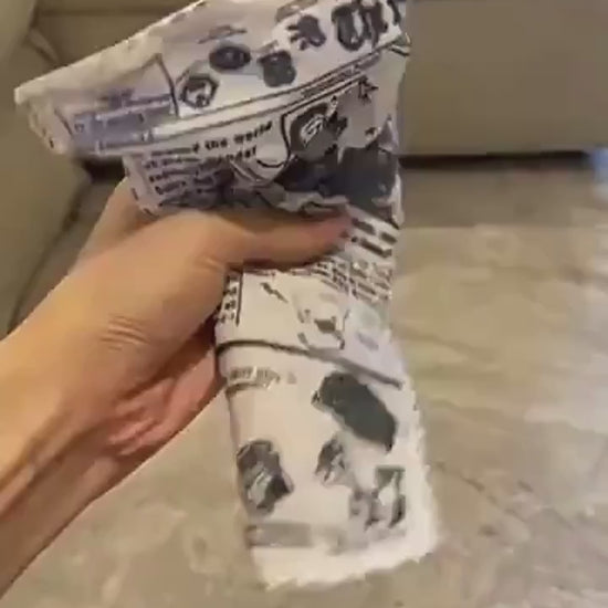 Ένα ανθεκτικό παιχνίδι από υφασμάτινο υλικό, με πολύχρωμο σχέδιο τύπου εφημερίδας και ενσωματωμένο ήχο squeak που θα του τραβήξει αμέσως την προσοχή.